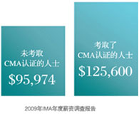拥有中/英文双语试卷的CMA认证被列为中国国际化人才重点培养项目!在全球范围内,CMA认证持有者年薪高达125,000美元,比非CMA高出30%-120%!
