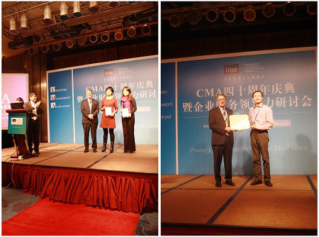 随着话题讨论的不断深入,整个会场的气氛也变得愈发热烈。台上台下互动问答、麦克风的来回传递、掌声的此起彼伏都将整个活动推入了高潮。就在这样和谐热烈的氛围里,IMA给予来自通用电气的宋爱玲以及来自西门子的方雪梅颁发了管理会计推广奖,以肯定他们在CMA人才的培养和对管理会计的运用上的肯定。宋爱玲和方雪梅也是高顿财经CMA培训中心的优秀学员,都在一年之内成功通过考试,获得了CMA证书。同时,庆典上IMA也授予本年度CMA考试高分奖得主最高分奖。
